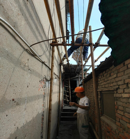 近日,公司后勤綜合服務(wù)部在對(duì)公司老舊房屋進(jìn)行日常巡查時(shí)發(fā)現(xiàn),原四分公司生活基地大禮堂山墻檐口出現(xiàn)間斷式沉降斷裂。經(jīng)檢查,此處的問題是由墻體自重及屋面木質(zhì)結(jié)構(gòu)自然腐朽所導(dǎo)致的。山墻腳即是住戶出入通道,隨時(shí)有墜落傷人的安全隱患。鑒于大禮堂層高十幾米,無(wú)法實(shí)施維修處理,我部第一時(shí)間向領(lǐng)導(dǎo)匯報(bào)后,及時(shí)拿出整頓方案,頂著烈日高溫,立即沿山墻搭建一條十幾米長(zhǎng)的鋼管架安全通道,排除了隱患,確保居民出入平安。