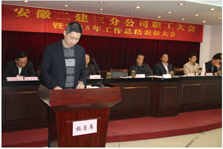 分公司葉和永經(jīng)理在經(jīng)理報(bào)告中圍繞“全面貫徹黨的十八大、十八屆三中、四中、五中全會精神,深入落實(shí)集團(tuán)首屆職代會精神及二建公司十五屆三次職代會精神,以及“基礎(chǔ)管理提升年”為主導(dǎo)思想提出“推進(jìn)從嚴(yán)管理;開創(chuàng)科學(xué)發(fā)展新篇章;實(shí)施精細(xì)管理;全面完成既定新目標(biāo)”的分公司工作主導(dǎo)思想。并在會上作《推進(jìn)從嚴(yán)管理開創(chuàng)科學(xué)發(fā)展新篇章實(shí)施精細(xì)管理全面完成既定新目標(biāo)》的報(bào)告,報(bào)告肯定了過去一個(gè)時(shí)期的工作成果,并在立足市場、客觀分析的基礎(chǔ)上,明晰契合自身的發(fā)展思路、全面部署下一步各項(xiàng)工作。