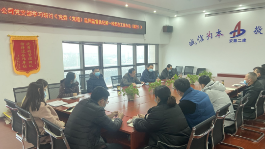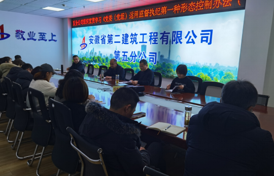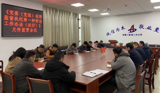 近期,為認(rèn)真落實全面從嚴(yán)治黨主體責(zé)任和監(jiān)督責(zé)任,踐行“四種形態(tài)”,強(qiáng)化“第一種形態(tài)”運(yùn)用。安徽二建公司所屬各單位組織學(xué)習(xí)了《黨委(黨組)運(yùn)用監(jiān)督執(zhí)紀(jì)第一種形態(tài)工作辦法(試行)》。