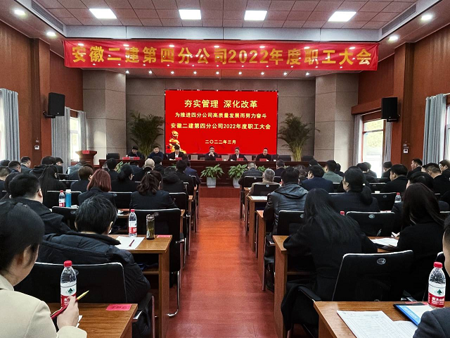3月4日上午,第四分公司順利召開了2022年度職工大會(huì)。公司黨委副書記、總經(jīng)理李建成、黨委工作部主任施用宏、工會(huì)副主席、女工委主任王俊到會(huì)指導(dǎo)。第四分公司100名職工參加會(huì)議。
