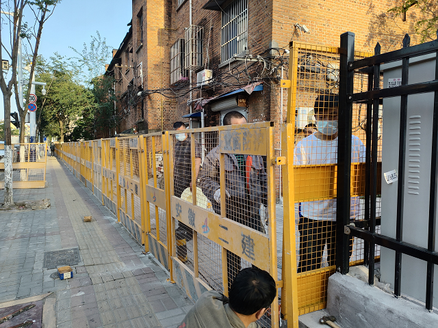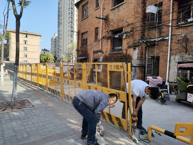 目前疫情防控形勢嚴峻,4月8日接合肥市疫情防控通知,要求各轄區(qū)內“三無”小區(qū)實行臨時封閉管理。由于公司居民住宅小區(qū)交通出入口較多,防控難度較大,為了更好地協(xié)助轄區(qū)政府實施封閉式管理,公司積極響應號召,落實后勤綜合服務部牽頭,機械分公司全力支持配合,抽調施工人員、調遣防護設施前往小區(qū)各出入口安裝圍擋,進行臨時封閉,經(jīng)過努力圓滿完成了建設任務。