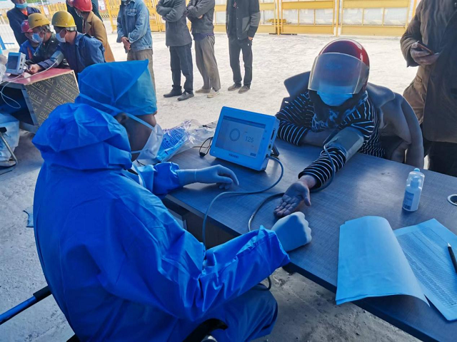 檢查主要包括測(cè)量血壓、胸外聽診、心率檢查及醫(yī)療咨詢等,醫(yī)護(hù)人員就防疫、防暑、應(yīng)急措施等知識(shí)進(jìn)行普及講解,提醒工友們注意飲食起居,做好自我防護(hù)。