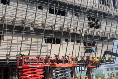 目前,宿州三館一院一中心項(xiàng)目已全面進(jìn)入到裝飾裝修階段,按照下半年生產(chǎn)目標(biāo),項(xiàng)目部針對(duì)室內(nèi)裝修、室外鋪裝、幕墻安裝、鋼網(wǎng)架等工作內(nèi)容細(xì)化階段目標(biāo)和責(zé)任人,每晚組織技術(shù)科、施工科與裝修班組、安裝班組召開生產(chǎn)進(jìn)度分析會(huì),對(duì)當(dāng)天問題及時(shí)溝通和解決,保證不耽誤生產(chǎn)進(jìn)度。