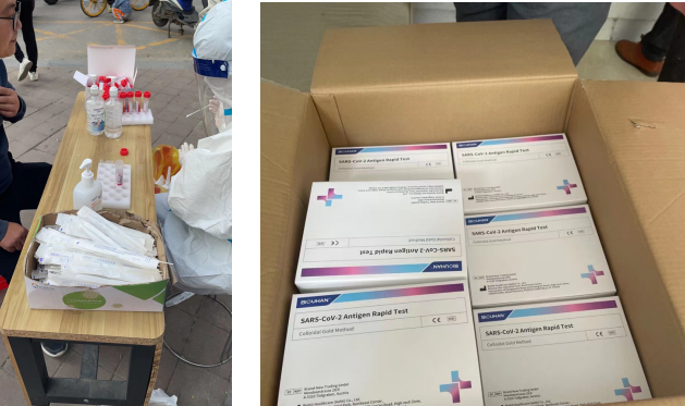 “您好,今天的抗原檢測開始了。”她一邊發(fā)放試劑盒,一邊叮囑居民相關注意事項,這個是她今天的主要工作,從早上6點多和晚上8點開始,獨自承擔了兩棟樓的抗原試劑發(fā)放和回收工作,挨家挨戶敲響了住戶的家門,面對個別住戶說打擾了他們睡眠的些許抱怨,她始終面帶著微笑,耐心解釋和等待著。就這樣一家一戶的發(fā)放和最終收集檢測的試劑,晚上將近11點,她才結(jié)束了一天的志愿服務工作。