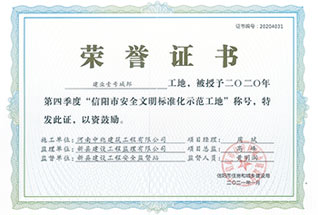 信陽(yáng)安全文明標(biāo)準(zhǔn)化示范工地榮譽(yù)