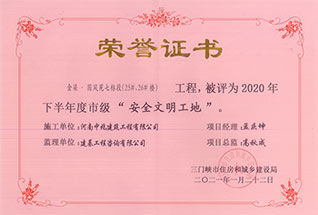 河南省市政工程省級(jí)安全文明工地榮譽(yù)(示范區(qū)支路項(xiàng)目)