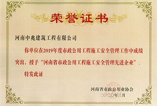市政公用工程施工安全管理先進(jìn)企業(yè)