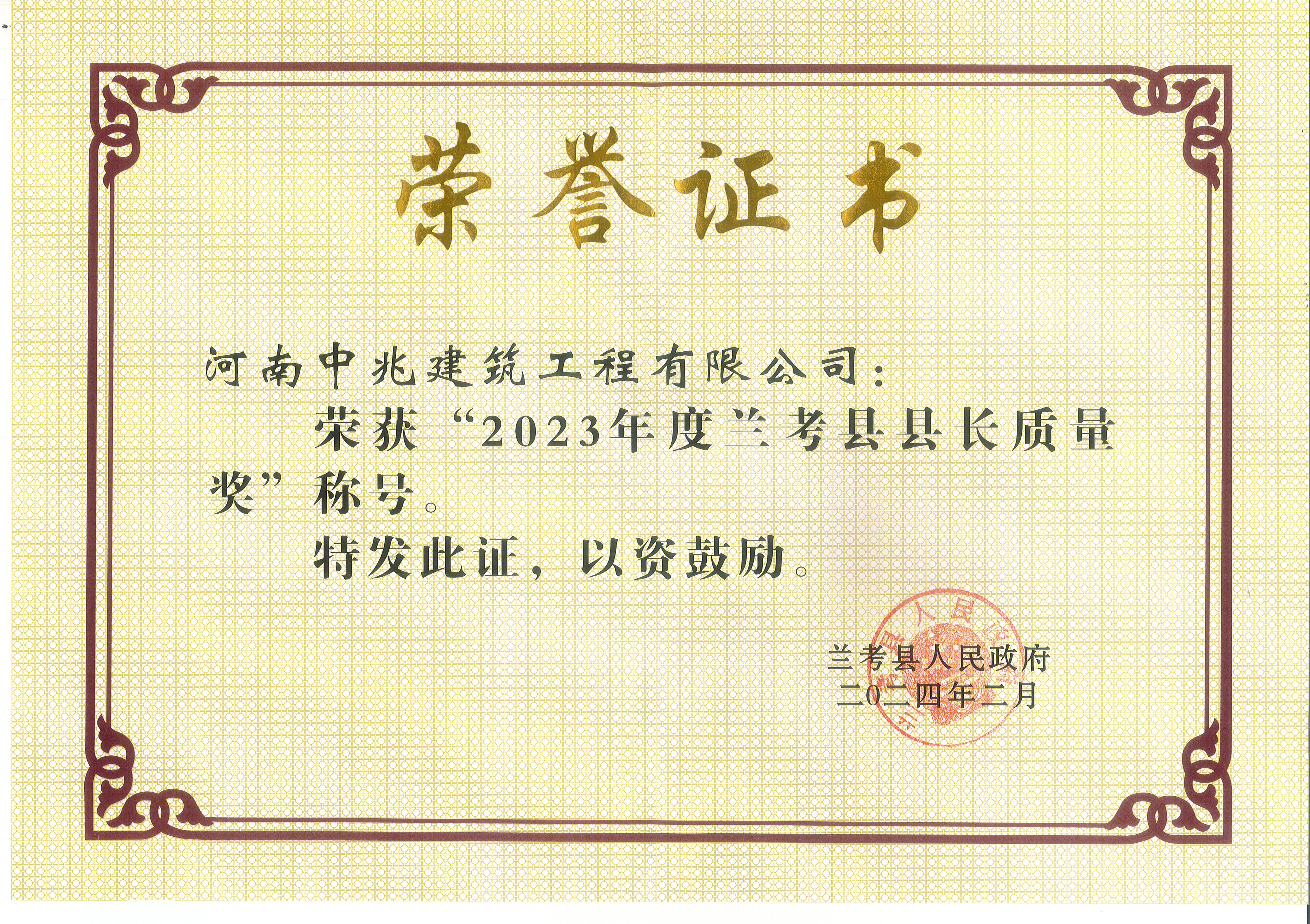 2023年度蘭考縣縣長(zhǎng)質(zhì)量獎(jiǎng)